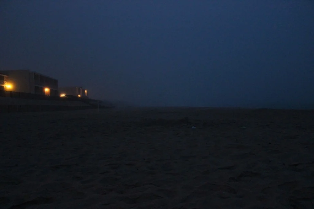 When you take a midnight train (actually, 12:38-ish am) you arrive at "the end" (seriously, it's a stump) around 4:00 am. From there it's a nice, long walk to the beach. We ignored about 5-6 cabs honking and asking, "are you sure you don't need a ride - you don't even have to pay." We politely declined and explained that we were there to watch the sunrise. Normally, they'd just drive away, but considering the dense. gray. fog almost all of the cabbies surveyed the sky, our backpacks, shook their heads and drove away. It was a little crazy to arrive at the cold, dark beach at 4:45-ish am. The fog was so dense we could hardly see a thing, but the swelling sounds of crashing waves informed us how close the water was.